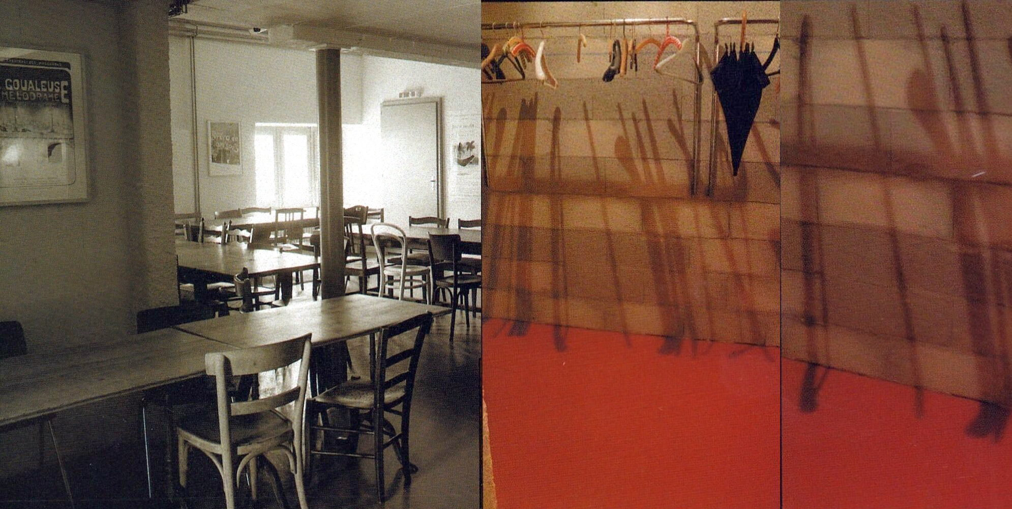 Das Plakat stammt von Günther Förg, einem international bekannten deutschen Künstler, der sich teilweise in Le Locle niedergelassen hat. Als Maler, Fotograf und Bildhauer wählt er hier Aquarellfarben, um ein herbstliches, in Dämmerung getauchtes Môtiers zu beschwören. Die Buchstaben schweben dort wie Skulpturen in einer freien und poetischen Landschaft.